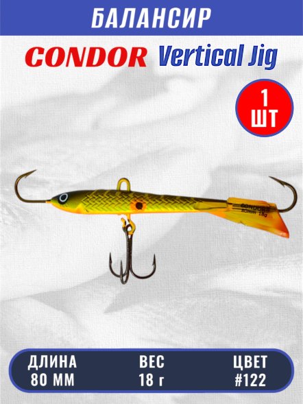 ➤ Какие характеристики у товара "Балансир рыболовный для зимней рыбалки Condor 3228 размер 80 мм 18 гр цвет 122"?