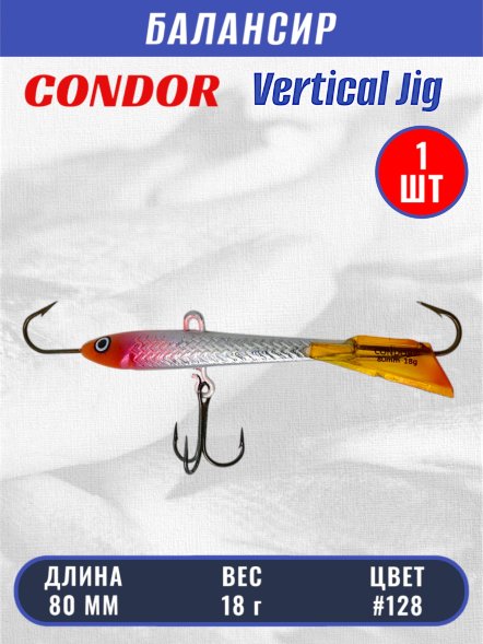 ➤ Какие характеристики у товара "Балансир рыболовный для зимней рыбалки Condor 3228 размер 80 мм 18 гр цвет 128"?