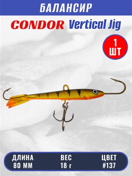 ➤ Какие характеристики у товара "Балансир рыболовный для зимней рыбалки Condor 3228 размер 80 мм 18 гр цвет 137"?