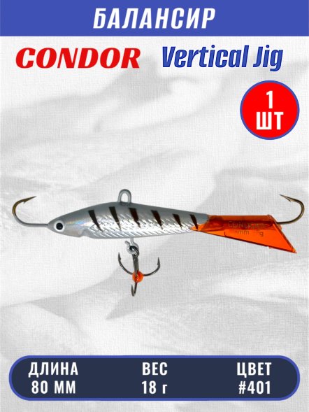 ➤ Какие характеристики у товара "Балансир рыболовный для зимней рыбалки Condor 3228 размер 80 мм 18 гр цвет 401"?